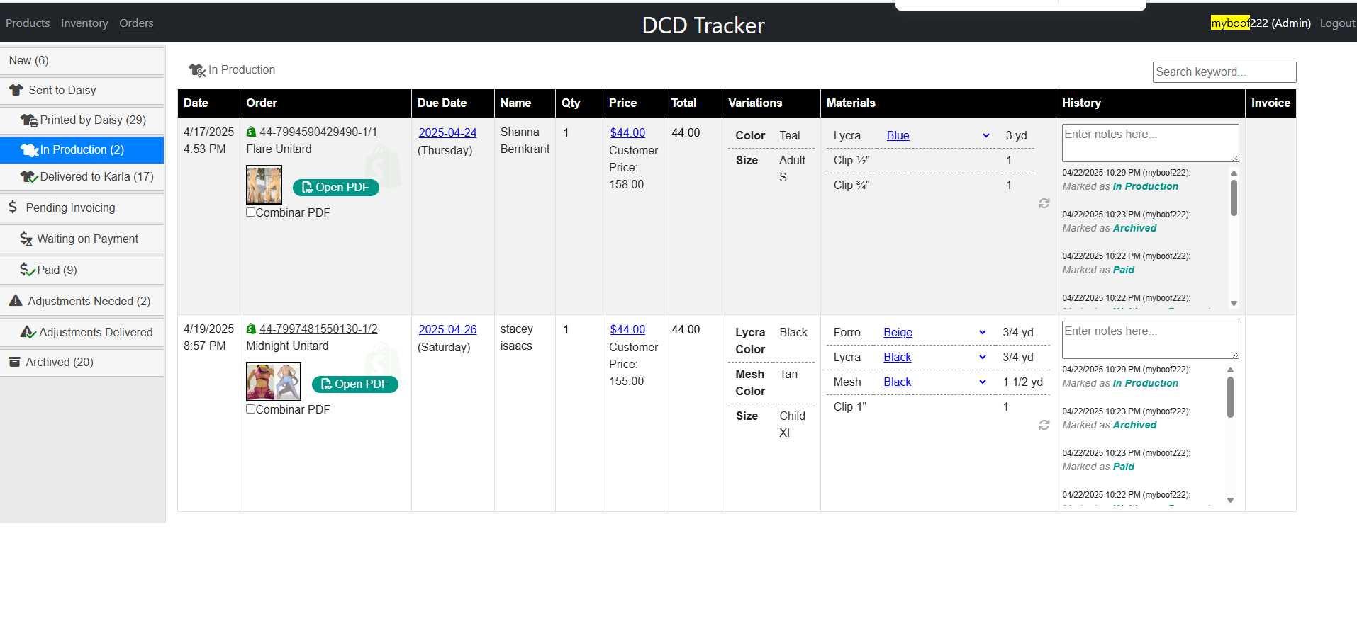 This system replaced manual tracking and communication with a centralized, collaborative tool—reducing miscommunication, streamlining fulfillment, and empowering both the admin and production sides of the business.
